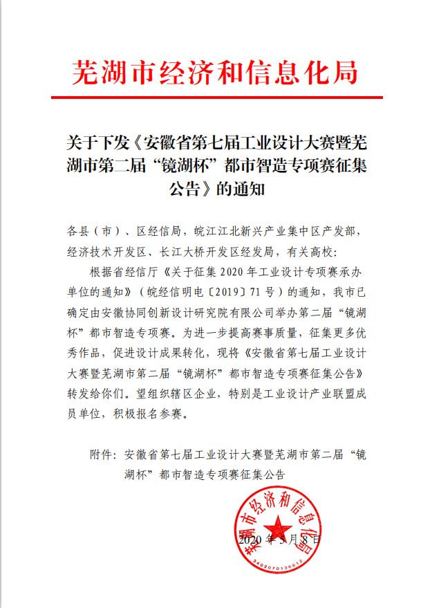 為進(jìn)一步加快蕪湖市現(xiàn)代制造產(chǎn)業(yè)的升級轉(zhuǎn)型,加速工業(yè)設(shè)計(jì)與制造的融合,培養(yǎng)工業(yè)設(shè)計(jì)人才,決定舉辦安徽省第七屆工業(yè)設(shè)計(jì)大賽暨蕪湖市第二屆“鏡湖杯”都市智造專項(xiàng)賽。
